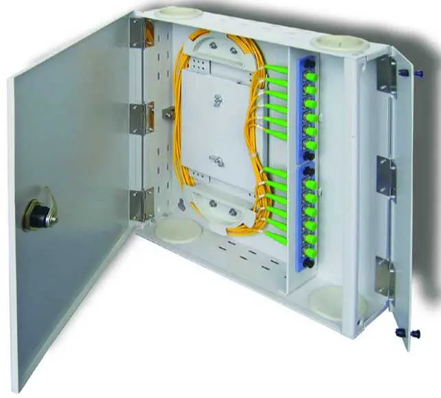Настенные. Металлический короб, который крепится к стене, оборудуется дверцей для доступа во внутреннее пространство. Модели отличаются по количеству портов — от 16 до 72, хотя встречаются варианты и с большим количеством. В некоторых моделях предусмотрена пыле- и влагозащита.